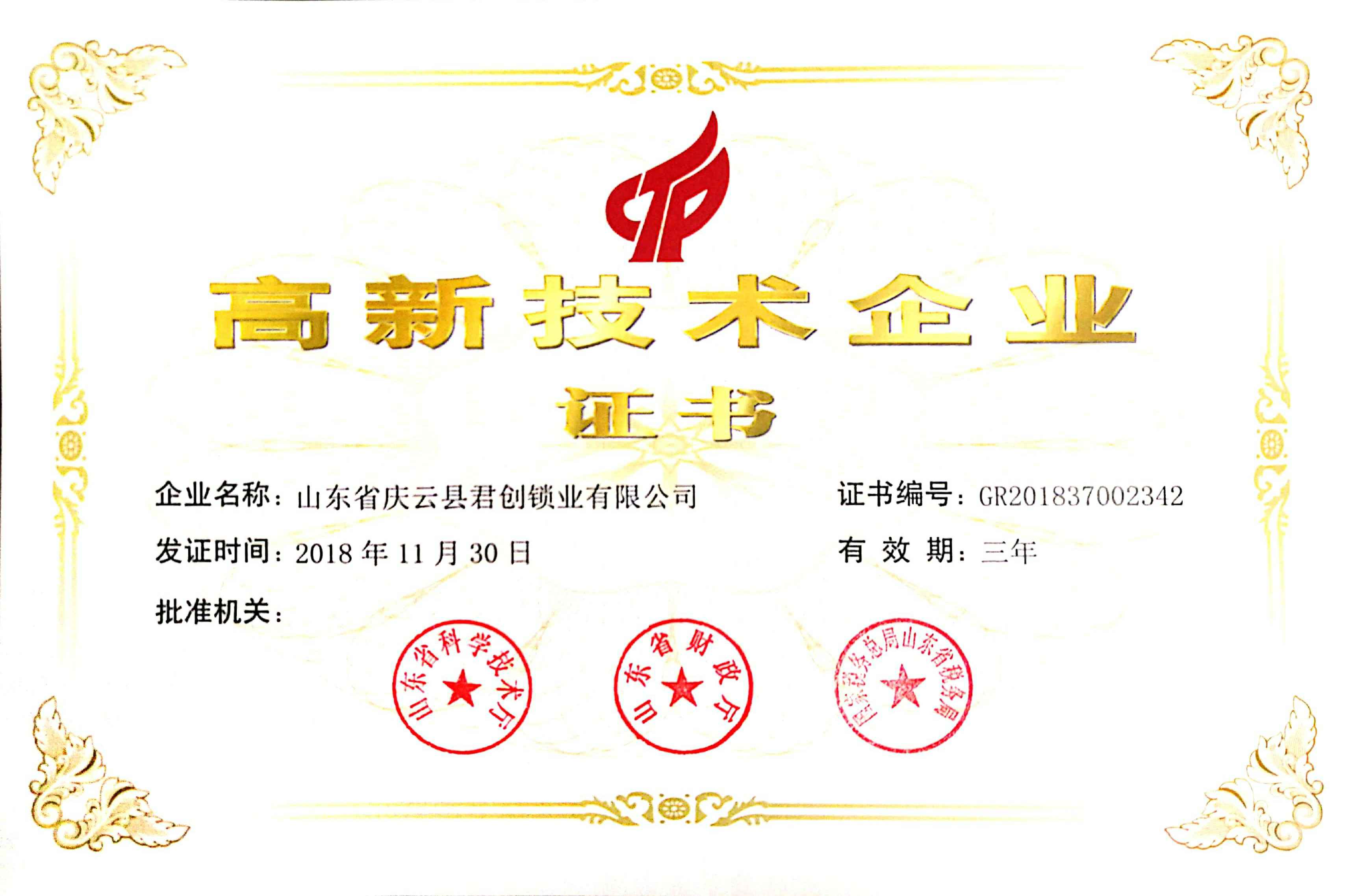 近日,沈阳志睿企业品牌推广有限公司喜迎佳音,获得了“国家高新技术企业证书”。这是沈阳志睿企业品牌推广有限公司继获得山东省产品质量奖、德州市信用民营企业、等荣誉后获得的一项新的荣誉。
